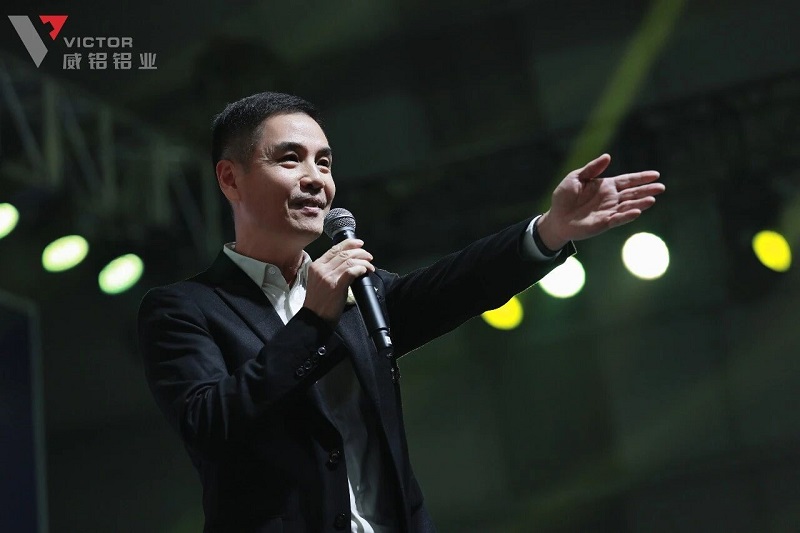 经久不息的掌声中,陶董事长登台发表新年致辞。字字句句凝聚着对过往的肯定,声声嘱托承载着未来的期许。全体威铝人高举酒杯,在激昂旋律中共同祝祷:愿2026年再创辉煌!